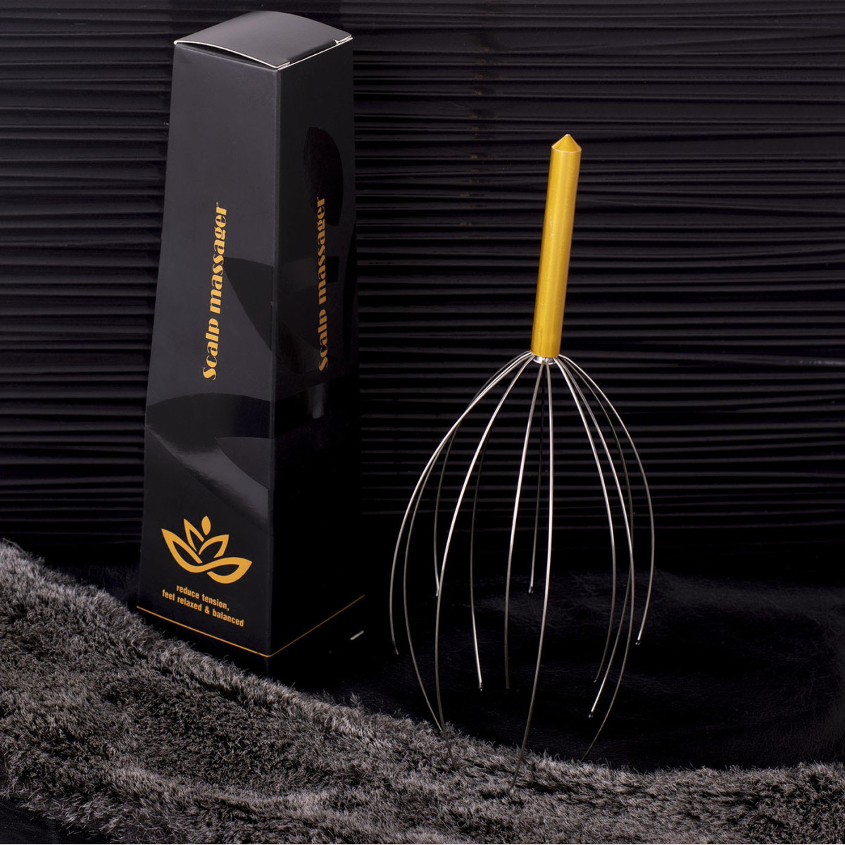 Acest aparat de masaj de lux pentru cap, inghinali și gât are 12 tije metalice flexibile cu vârfuri din cauciuc moale care stimulează ușor receptorii scalpului. Rezultatul este relaxarea instantanee, o avalanșă de endorfine și un ușor sentiment de fericire. Alegerea perfectă pentru cei care doresc să elibereze rapid stresul, tensiunea sau pur și simplu să se bucure de o senzație plăcută.