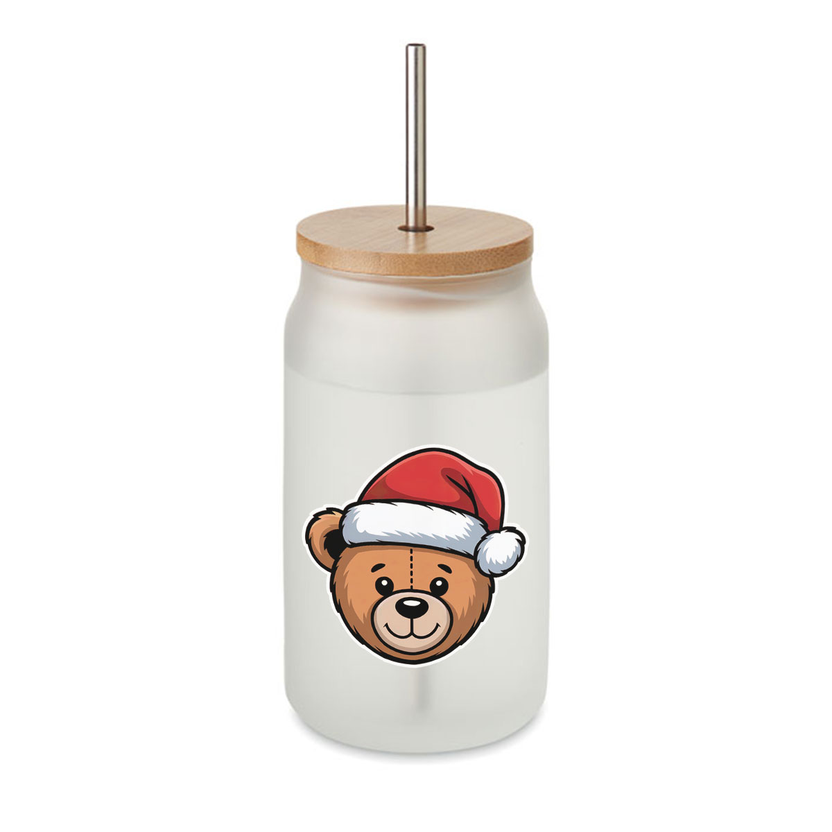 Borcan de sticlă cu pai metalic "Teddy bear" - o alegere confortabilă pentru sărbători și zilele obișnuite!
