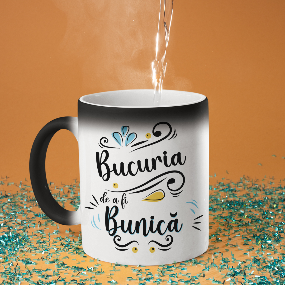 - Cana magică - nu degeaba se numește magică! La prima vedere, este o simplă cană neagră, dar atunci când se toarnă apă fierbinte în ea, aceasta devine albă, iar inscripția ascunsă este dezvăluită. Este o adevărată surpriză și un mic miracol pentru fiecare zi!