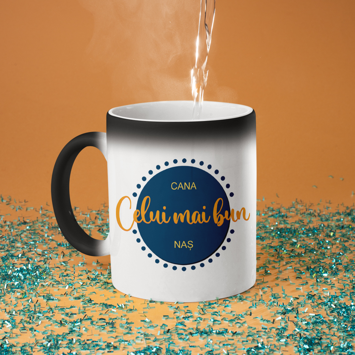 - Cana magică - nu degeaba se numește magică! La prima vedere, este o simplă cană neagră, dar atunci când se toarnă apă fierbinte în ea, aceasta devine albă, iar inscripția ascunsă este dezvăluită. Este o adevărată surpriză și un mic miracol pentru fiecare zi!