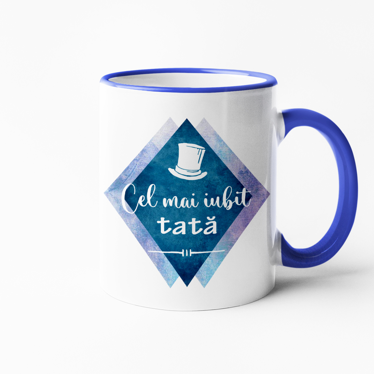 - Cană cu margine colorată - acest model iese în evidență prin designul său elegant: margine și mâner subtil colorate, care conferă cană jucăușă și evidențiază perfect inscripția unică.