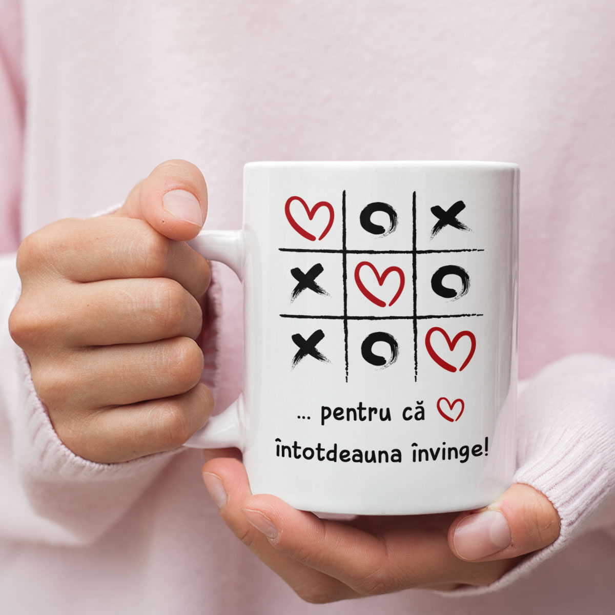 Inscripția este plasată pe ambele părți ale cănii, astfel încât va fi vizibilă atât pentru dvs. cât și pentru toți cei din jur.