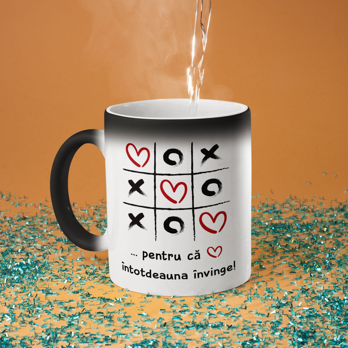 - Cana magică - nu degeaba se numește magică! La prima vedere, este o simplă cană neagră, dar atunci când se toarnă apă fierbinte în ea, aceasta devine albă, iar inscripția ascunsă este dezvăluită. Este o adevărată surpriză și un mic miracol pentru fiecare zi!