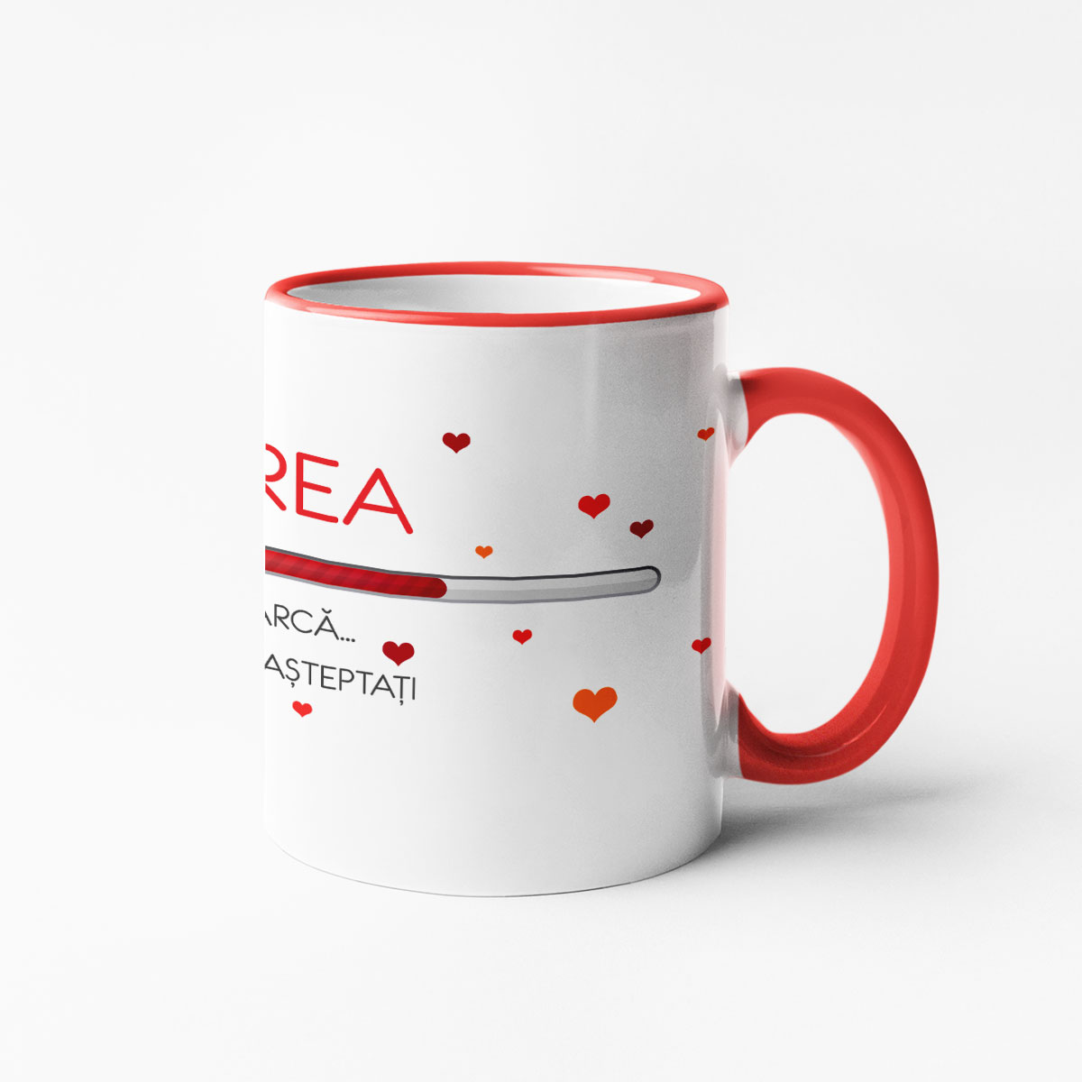 Inscripția este plasată pe ambele părți ale cănii, astfel încât va fi vizibilă atât pentru dvs. cât și pentru toți cei din jur.