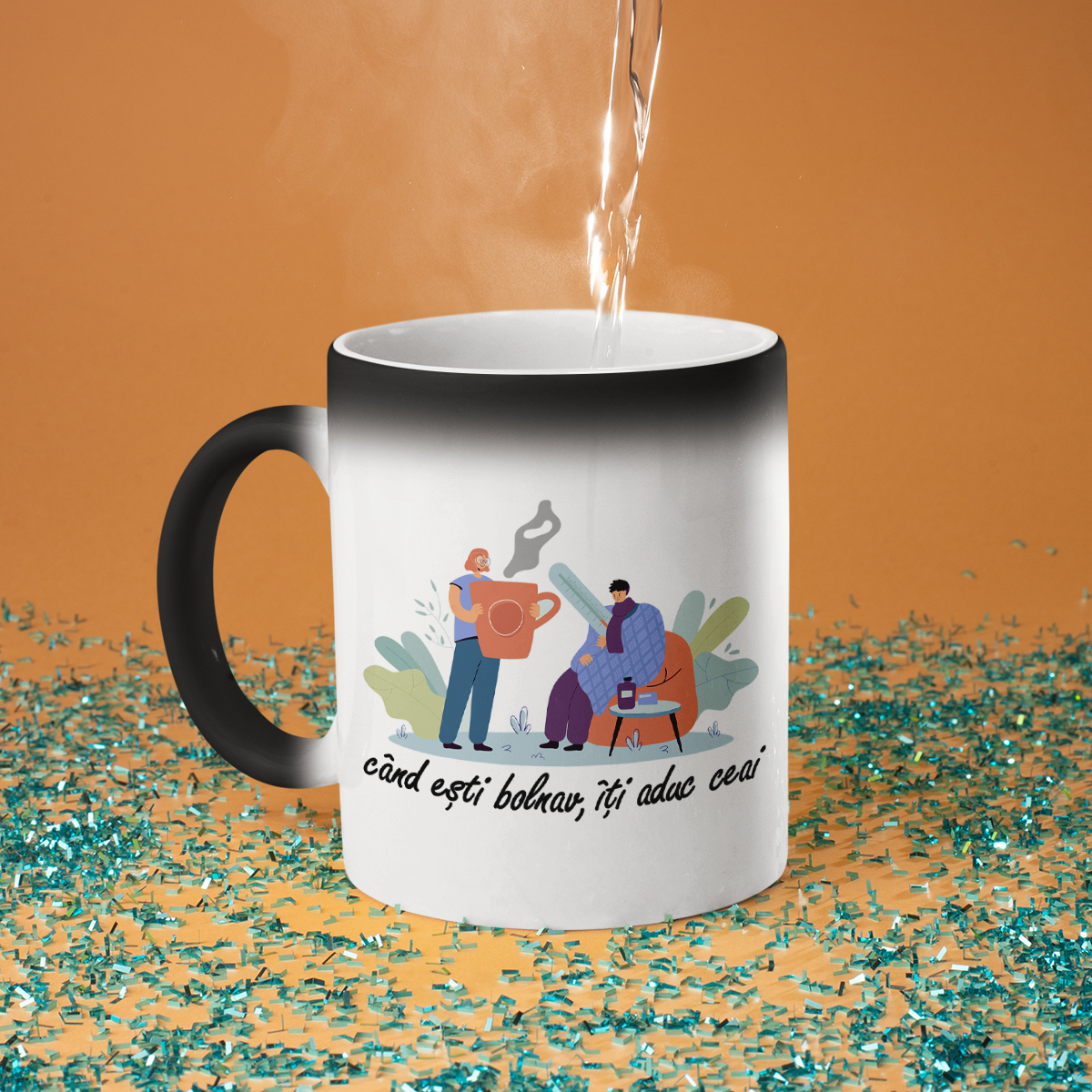 - Cana magică - nu degeaba se numește magică! La prima vedere, este o simplă cană neagră, dar atunci când se toarnă apă fierbinte în ea, aceasta devine albă, iar inscripția ascunsă este dezvăluită. Este o adevărată surpriză și un mic miracol pentru fiecare zi!