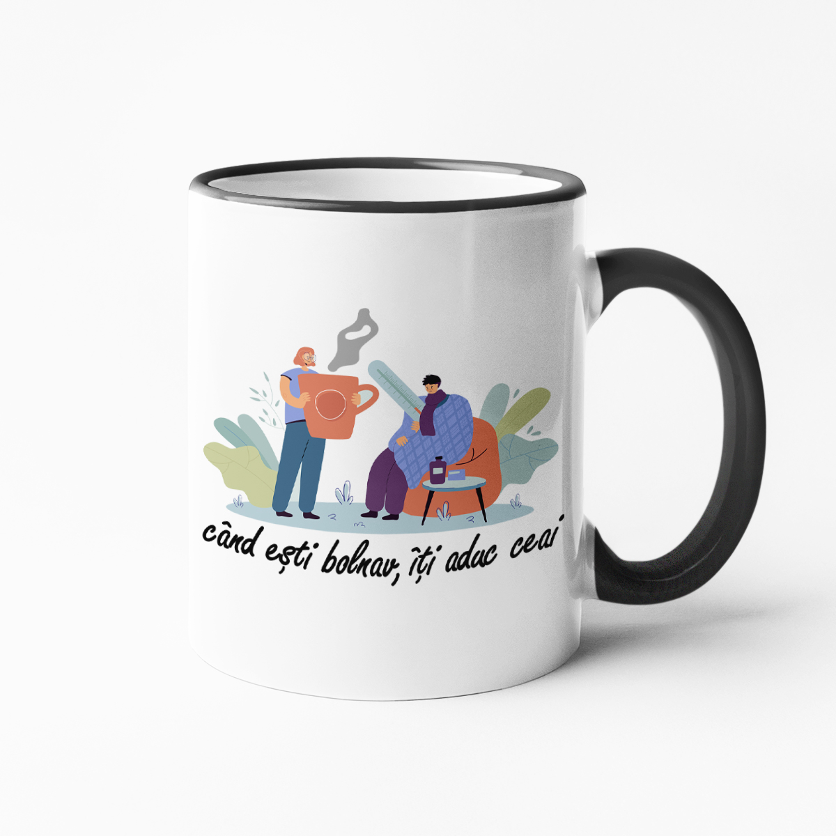 Inscripția este plasată pe ambele părți ale cănii, astfel încât va fi vizibilă atât pentru dvs. cât și pentru toți cei din jur.