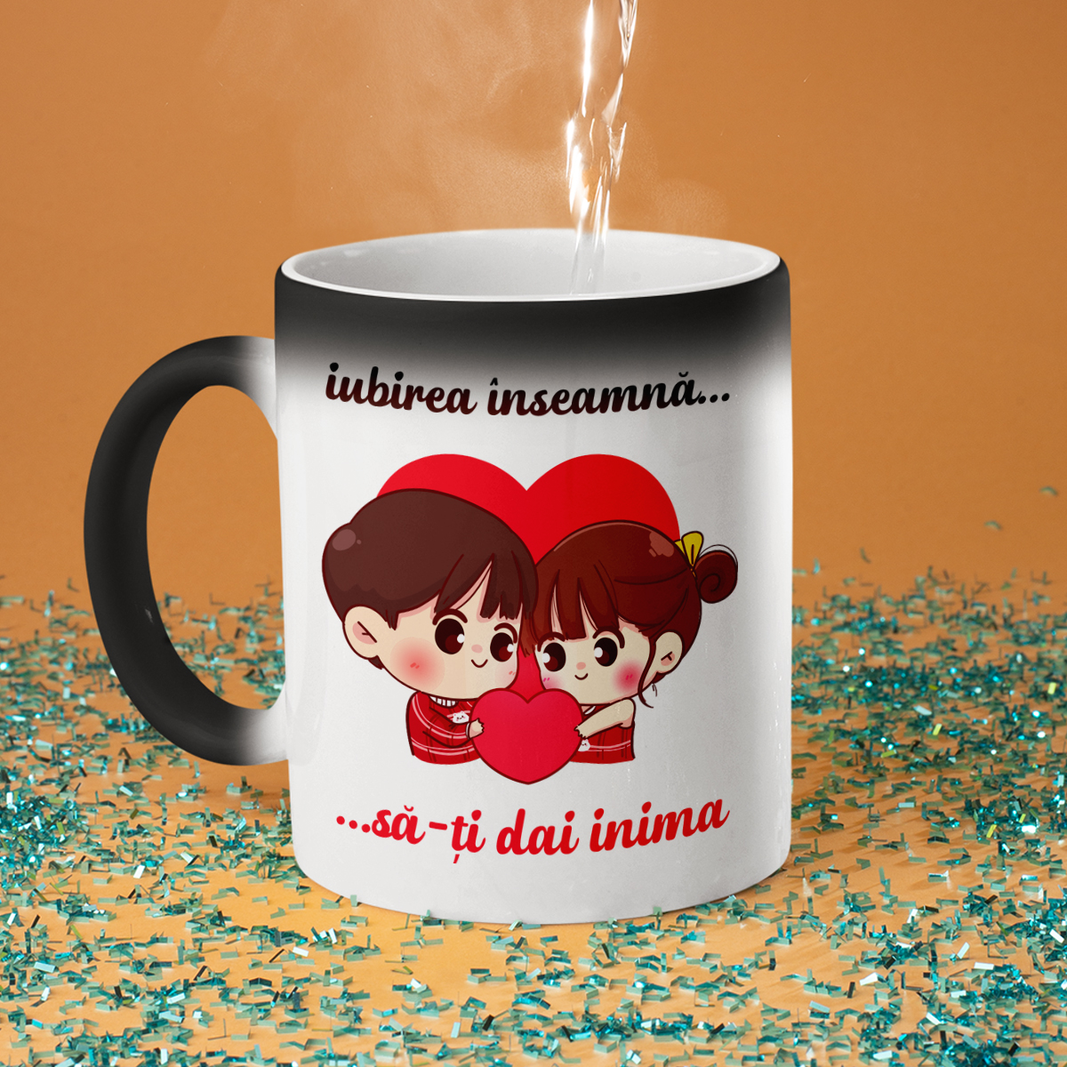 - Cana magică - nu degeaba se numește magică! La prima vedere, este o simplă cană neagră, dar atunci când se toarnă apă fierbinte în ea, aceasta devine albă, iar inscripția ascunsă este dezvăluită. Este o adevărată surpriză și un mic miracol pentru fiecare zi!