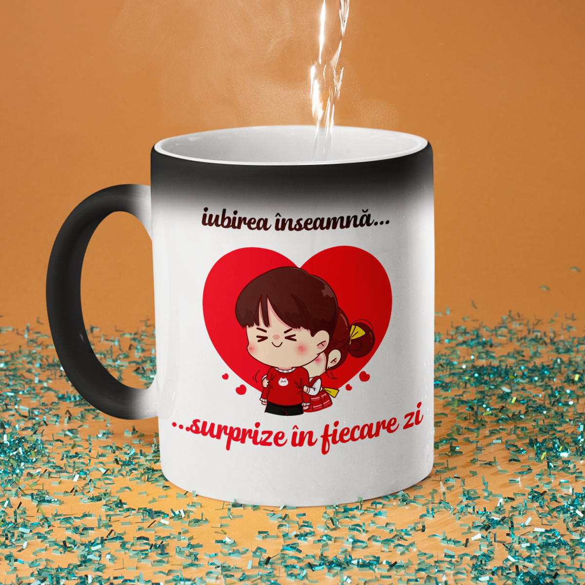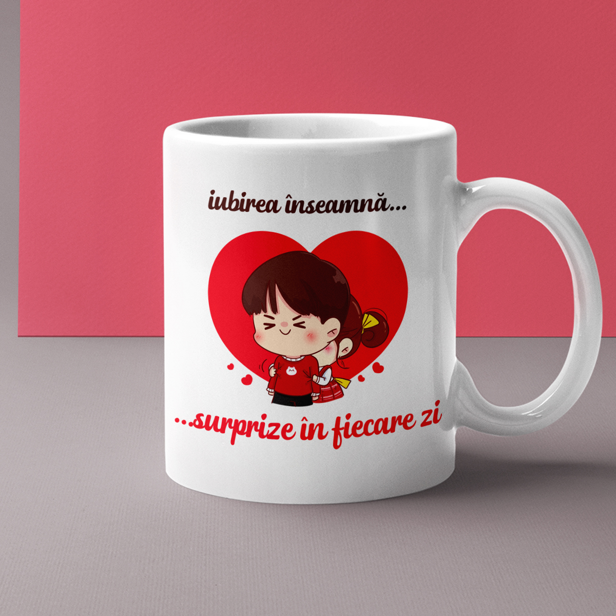 Cană "Iubirea înseamnă surprize în fiecare zi."