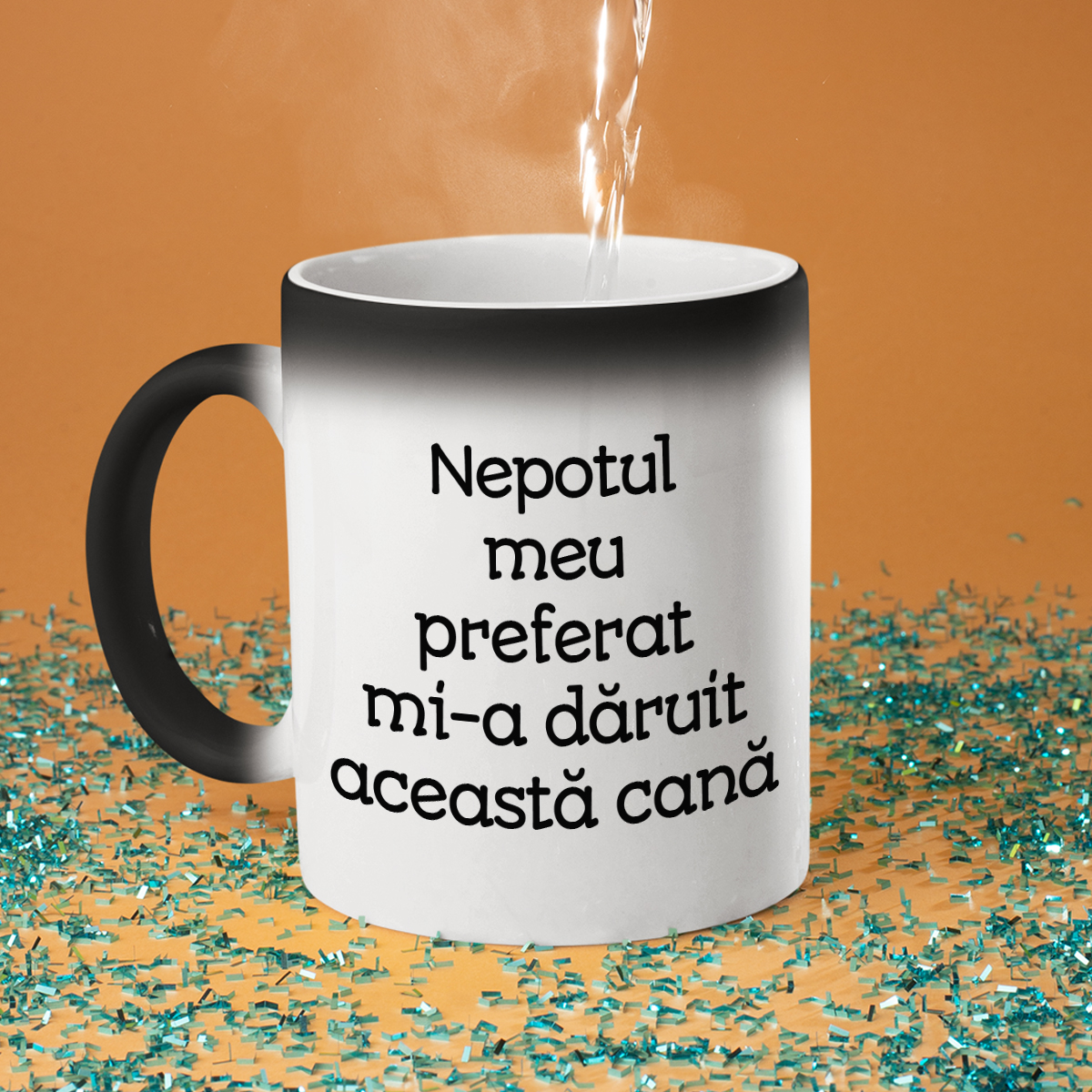 - Cana magică - nu degeaba se numește magică! La prima vedere, este o simplă cană neagră, dar atunci când se toarnă apă fierbinte în ea, aceasta devine albă, iar inscripția ascunsă este dezvăluită. Este o adevărată surpriză și un mic miracol pentru fiecare zi!