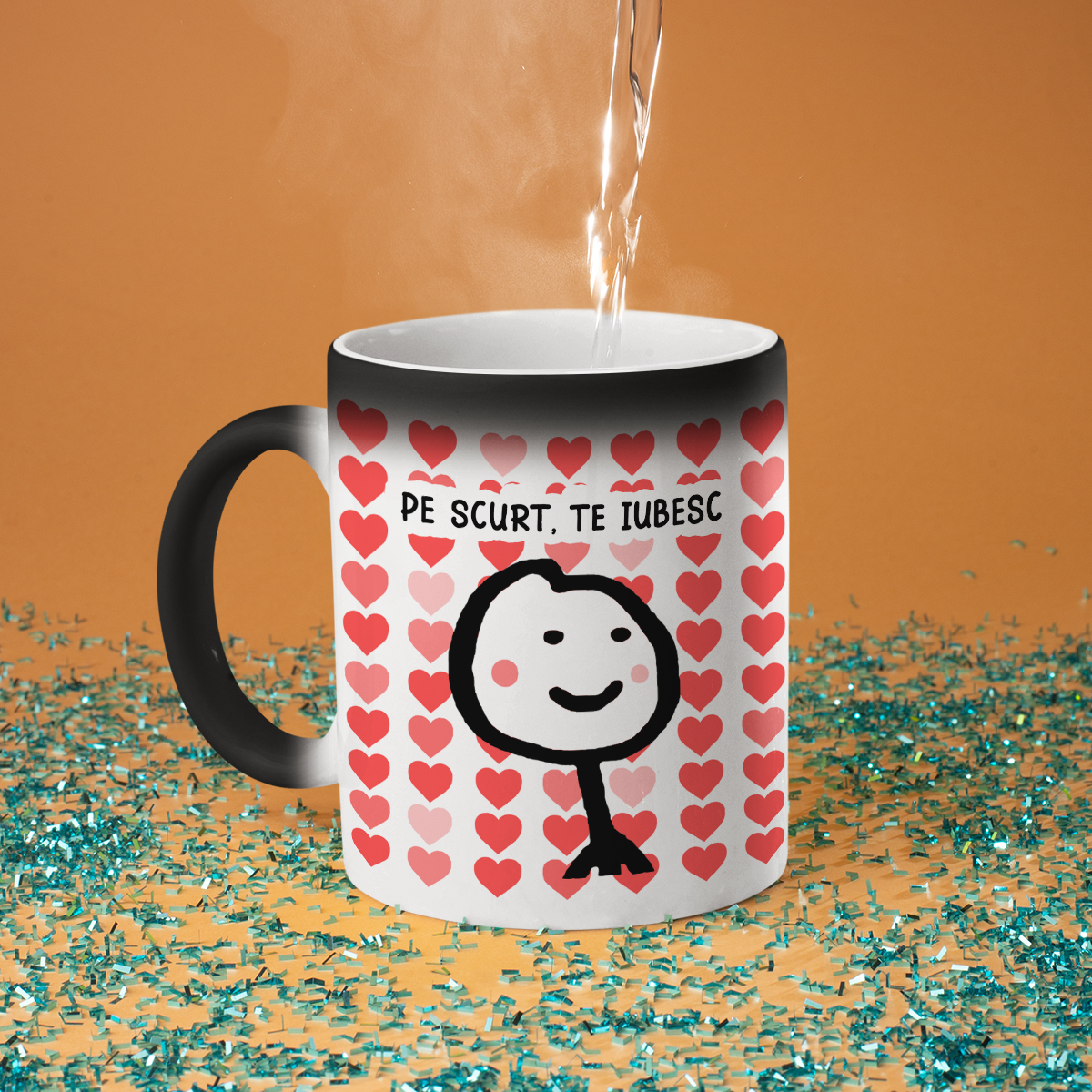 Inscripția este plasată pe ambele părți ale cănii, astfel încât va fi vizibilă atât pentru dvs. cât și pentru toți cei din jur.