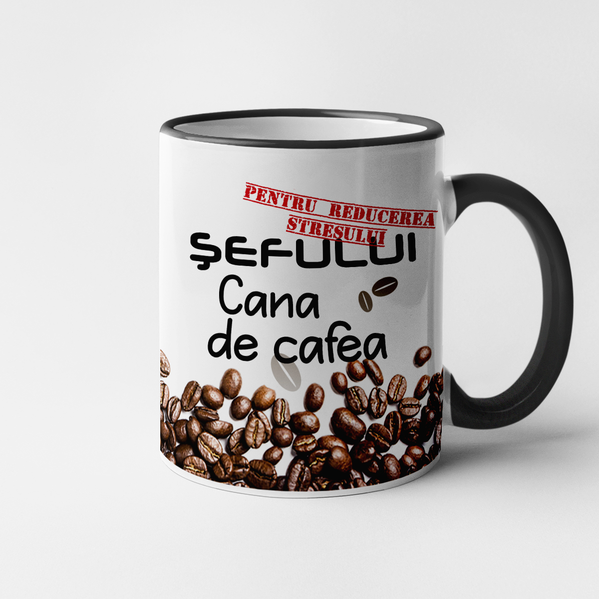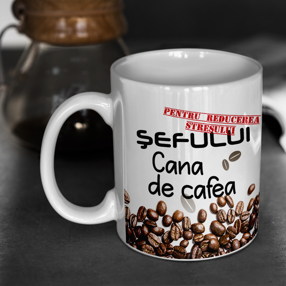 Inscripția este plasată pe ambele părți ale cănii, astfel încât va fi vizibilă atât pentru dvs. cât și pentru toți cei din jur.
