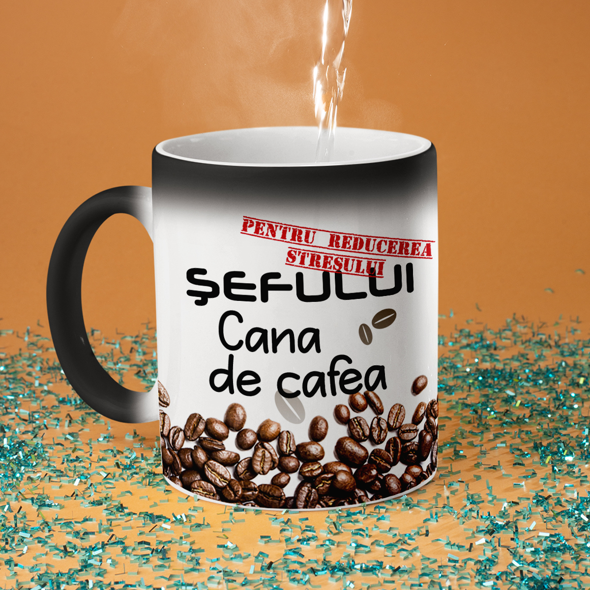 - Cana magică - nu degeaba se numește magică! La prima vedere, este o simplă cană neagră, dar atunci când se toarnă apă fierbinte în ea, aceasta devine albă, iar inscripția ascunsă este dezvăluită. Este o adevărată surpriză și un mic miracol pentru fiecare zi!