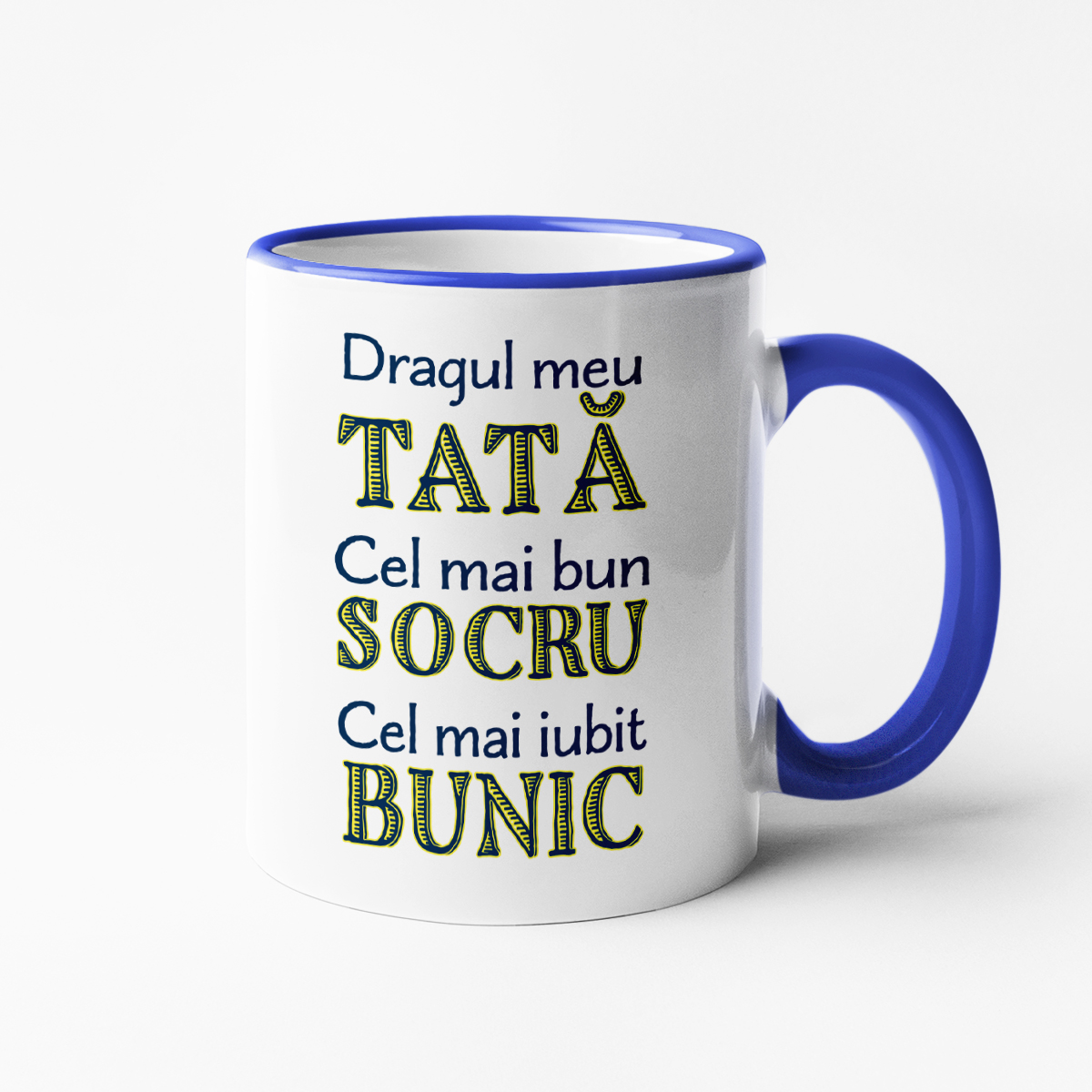 - Cană cu margine colorată - acest model iese în evidență prin designul său elegant: margine și mâner subtil colorate, care conferă cană jucăușă și evidențiază perfect inscripția unică.