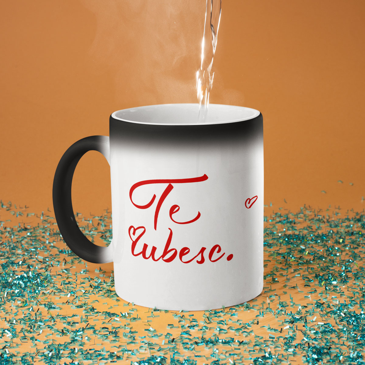- Cana magică - nu degeaba se numește magică! La prima vedere, este o simplă cană neagră, dar atunci când se toarnă apă fierbinte în ea, aceasta devine albă, iar inscripția ascunsă este dezvăluită. Este o adevărată surpriză și un mic miracol pentru fiecare zi!
