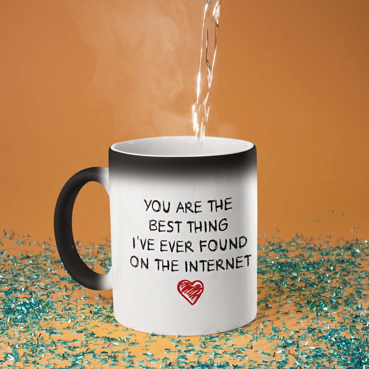 - Cana magică - nu degeaba se numește magică! La prima vedere, este o simplă cană neagră, dar atunci când se toarnă apă fierbinte în ea, aceasta devine albă, iar inscripția ascunsă este dezvăluită. Este o adevărată surpriză și un mic miracol pentru fiecare zi!