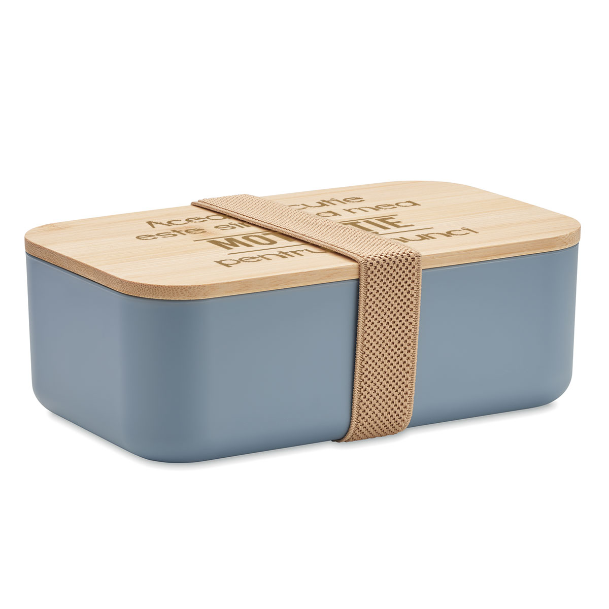 Fabricată din PLA (plastic pe bază de porumb) cu capac din bambus. Banda elastică RPET asigură că cutia rămâne bine închisă.