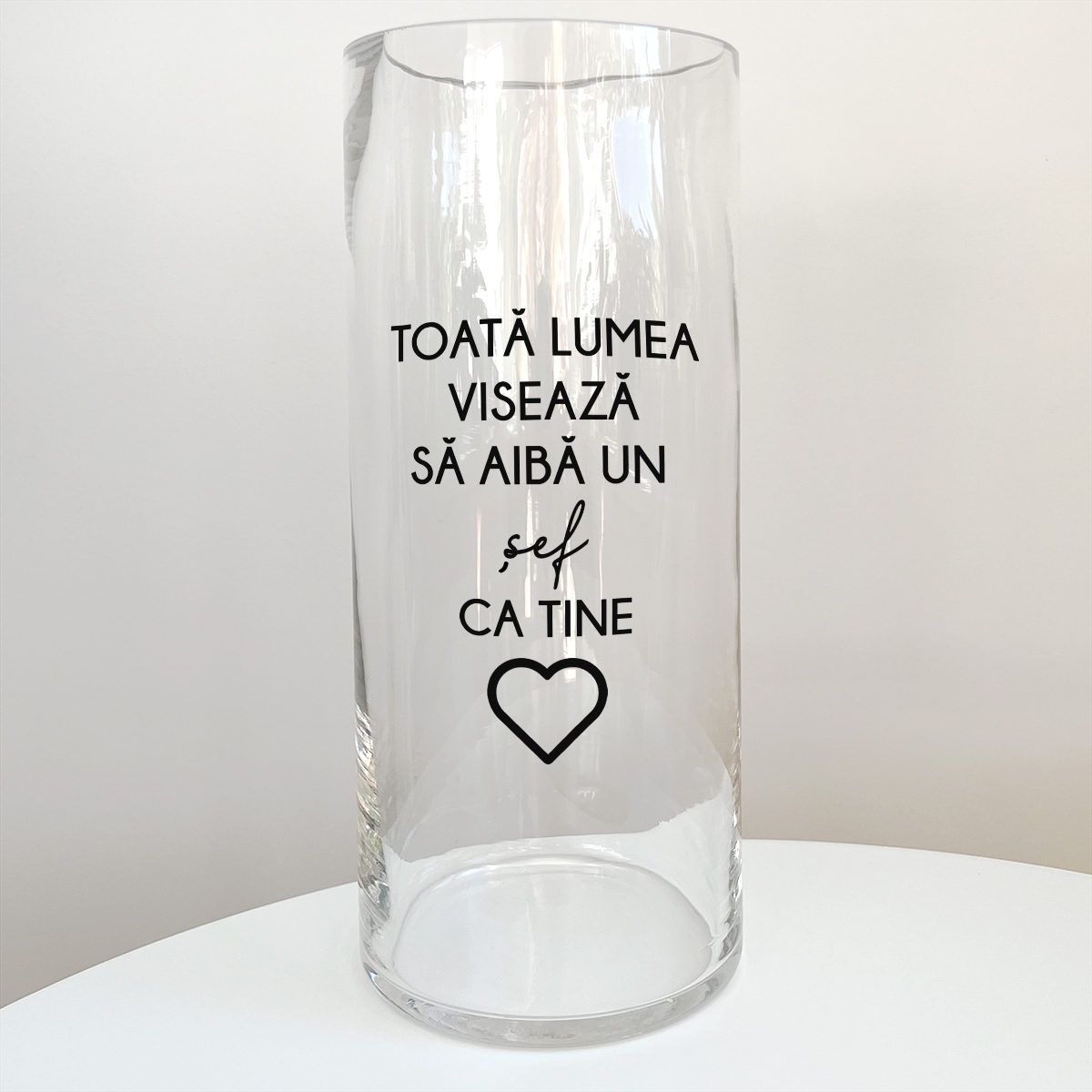 O vază rotundă din ceramică foarte fermecătoare cu inscripția - "Toată lumea visează să aibă un șef ca tine".