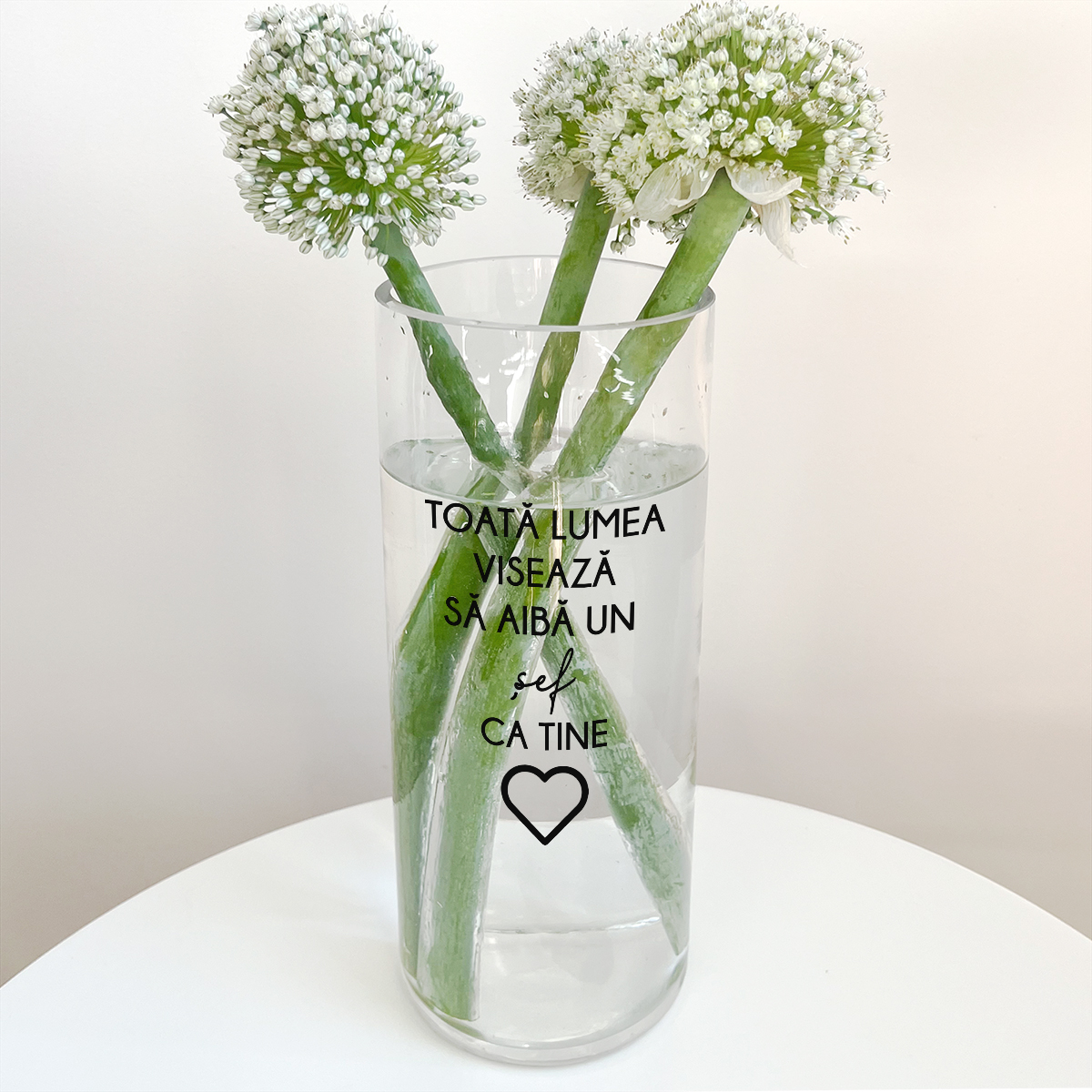 Această vază este un cadou potrivit atunci când vrei să îți exprimi recunoștința, aprecierea sau pur și simplu să îți surprinzi șefa cu un gest amuzant și plin de semnificație.